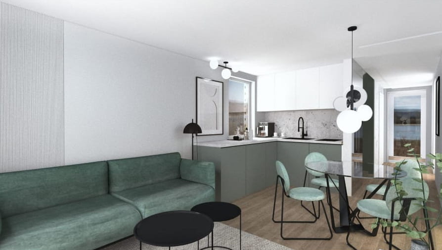 w standardzie zawierającym ogrzewanie podłogowe, klimatyzację oraz wykończoną