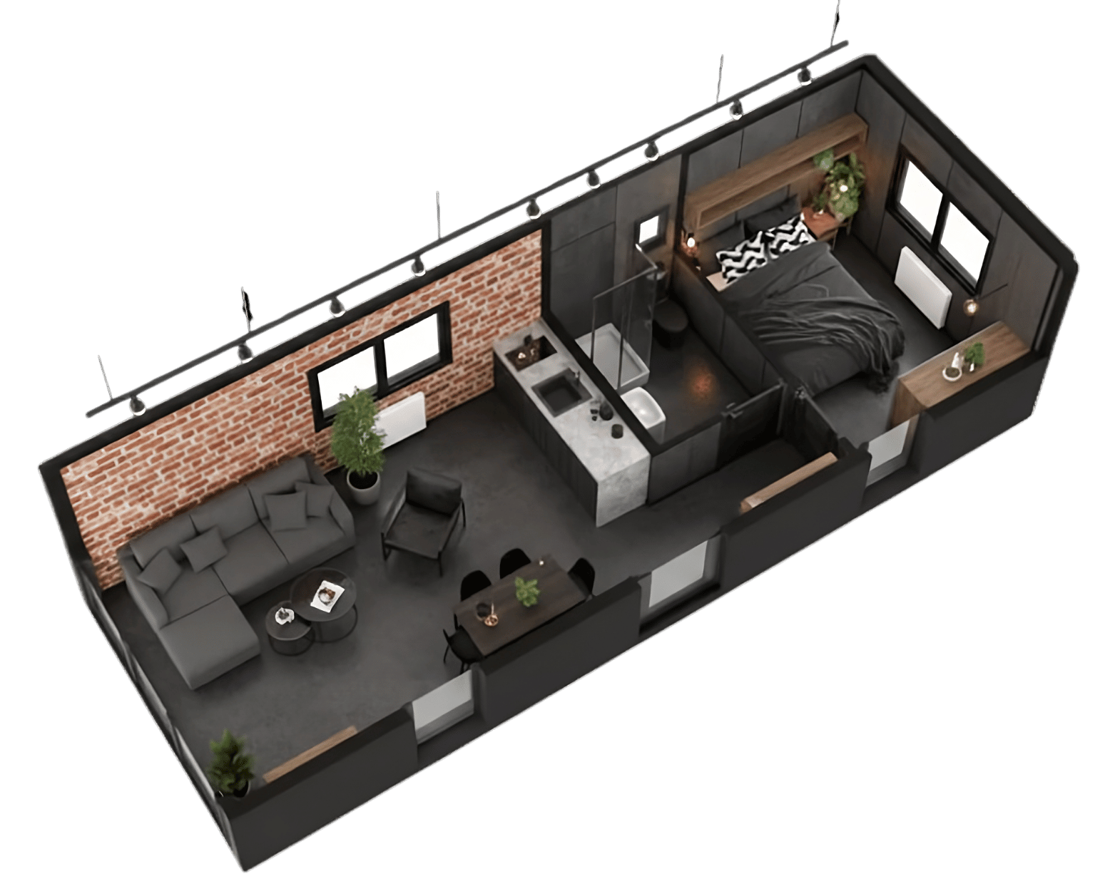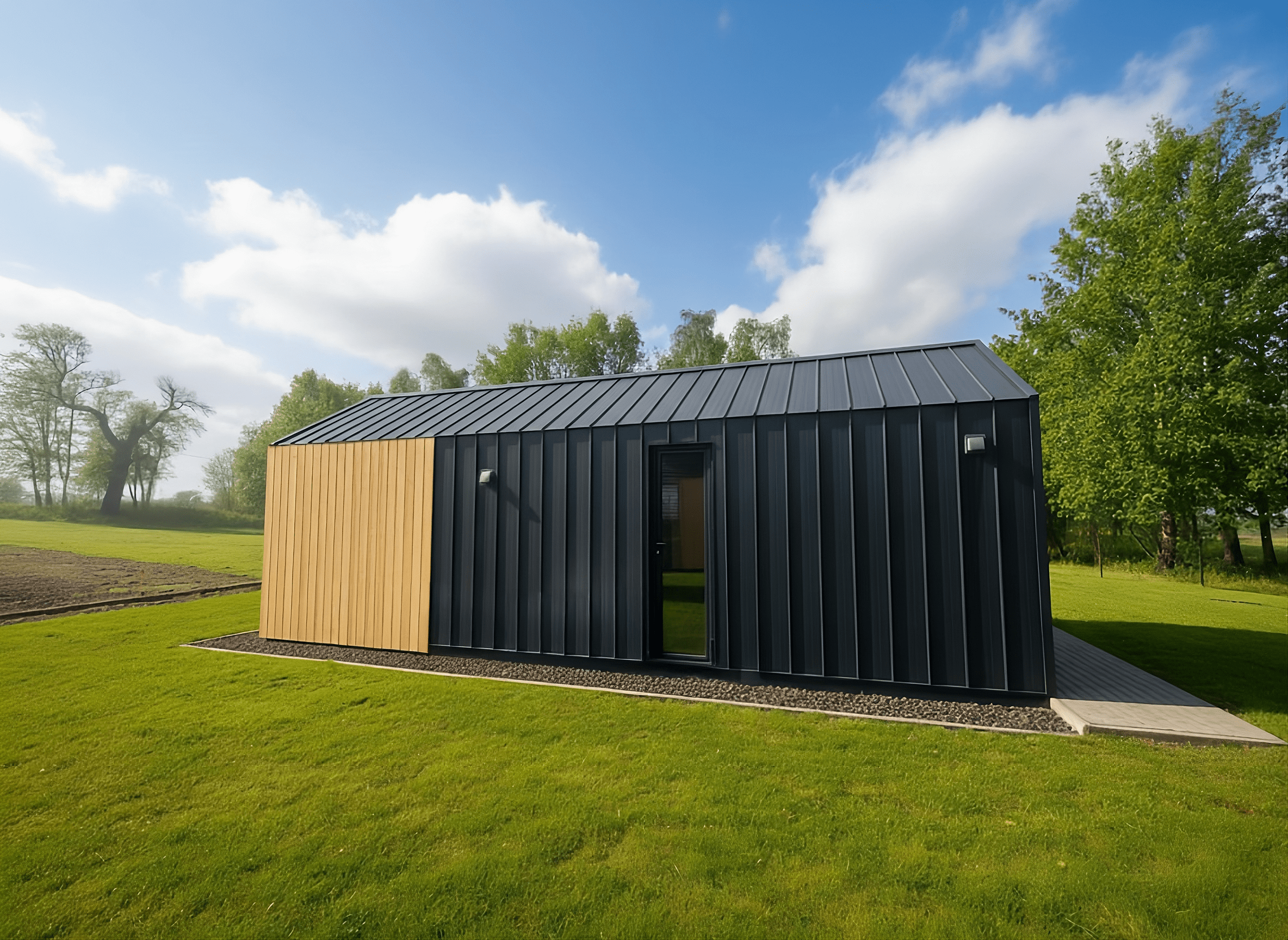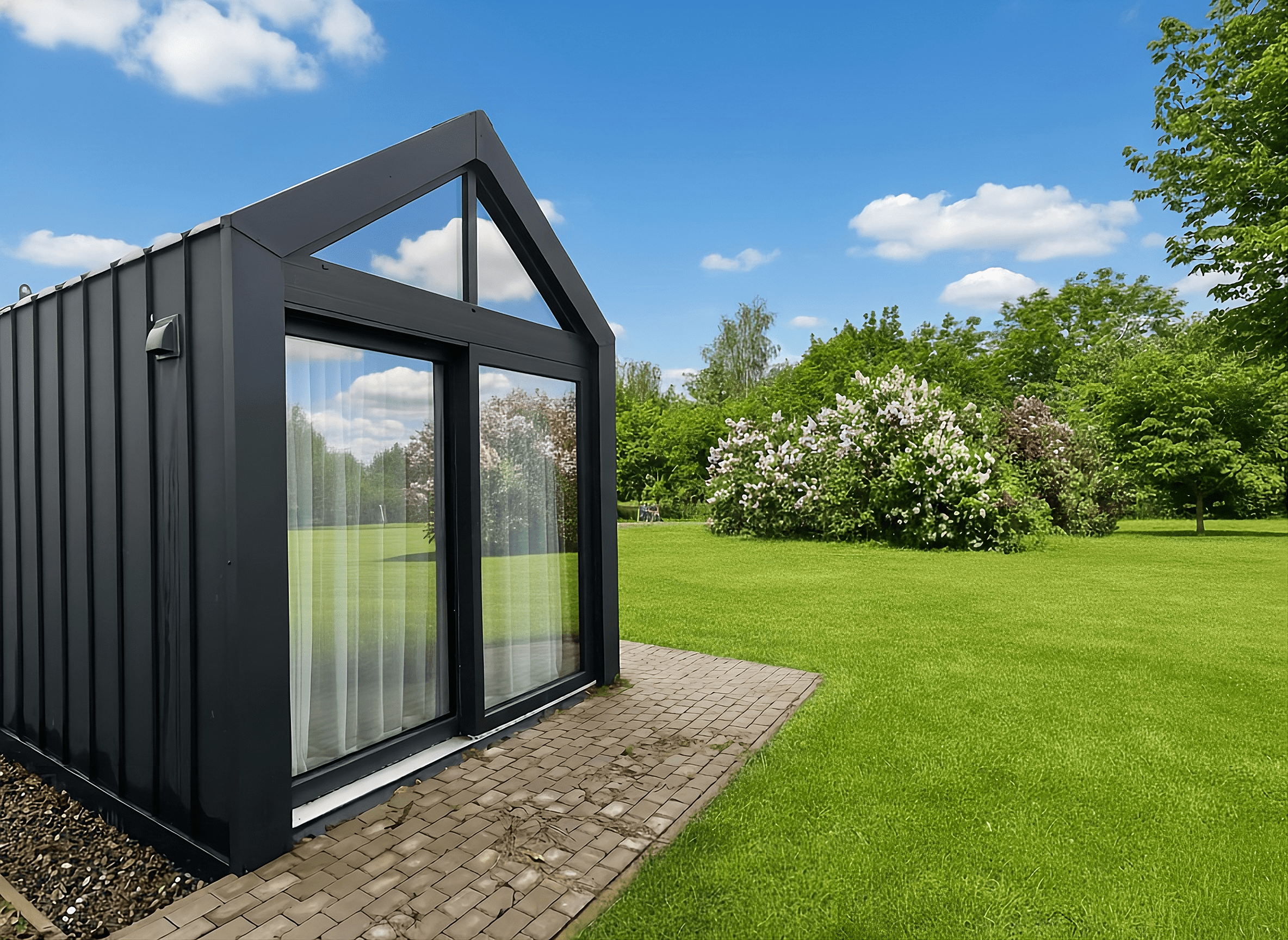 Cena obejmuje całoroczny dom mobilny o powierzchni 35 m² z dodatkową antresolą